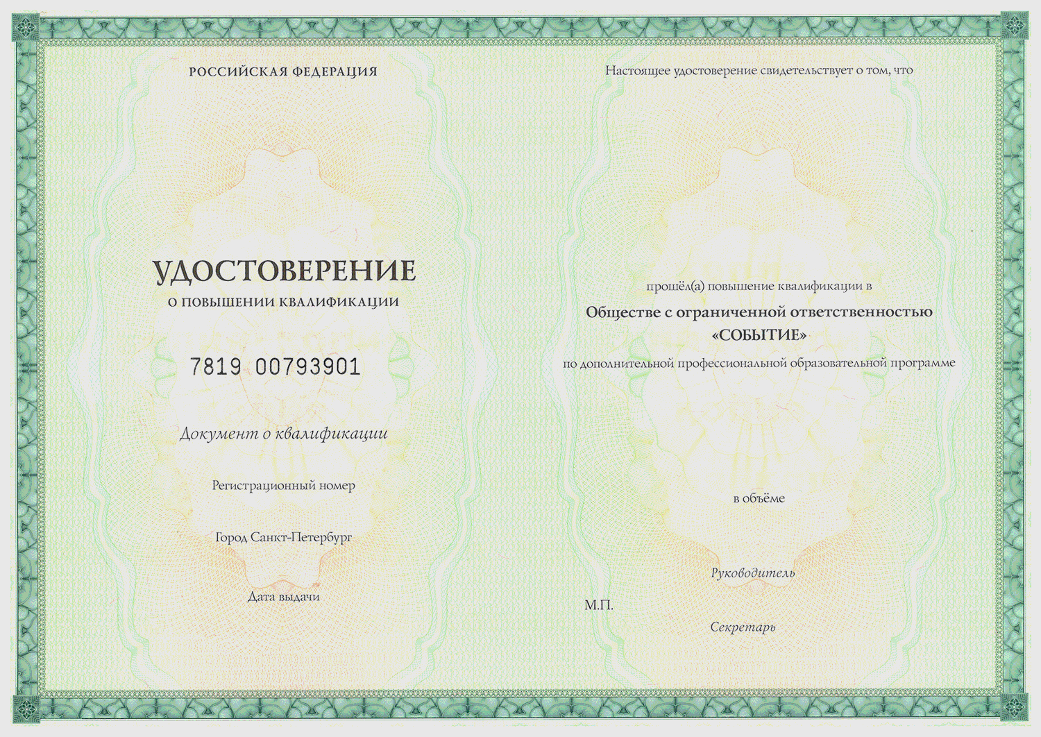 Курсантам, успешно прошедшим обучение, ООО «Событие» выдает удостоверение о повышении квалификации.